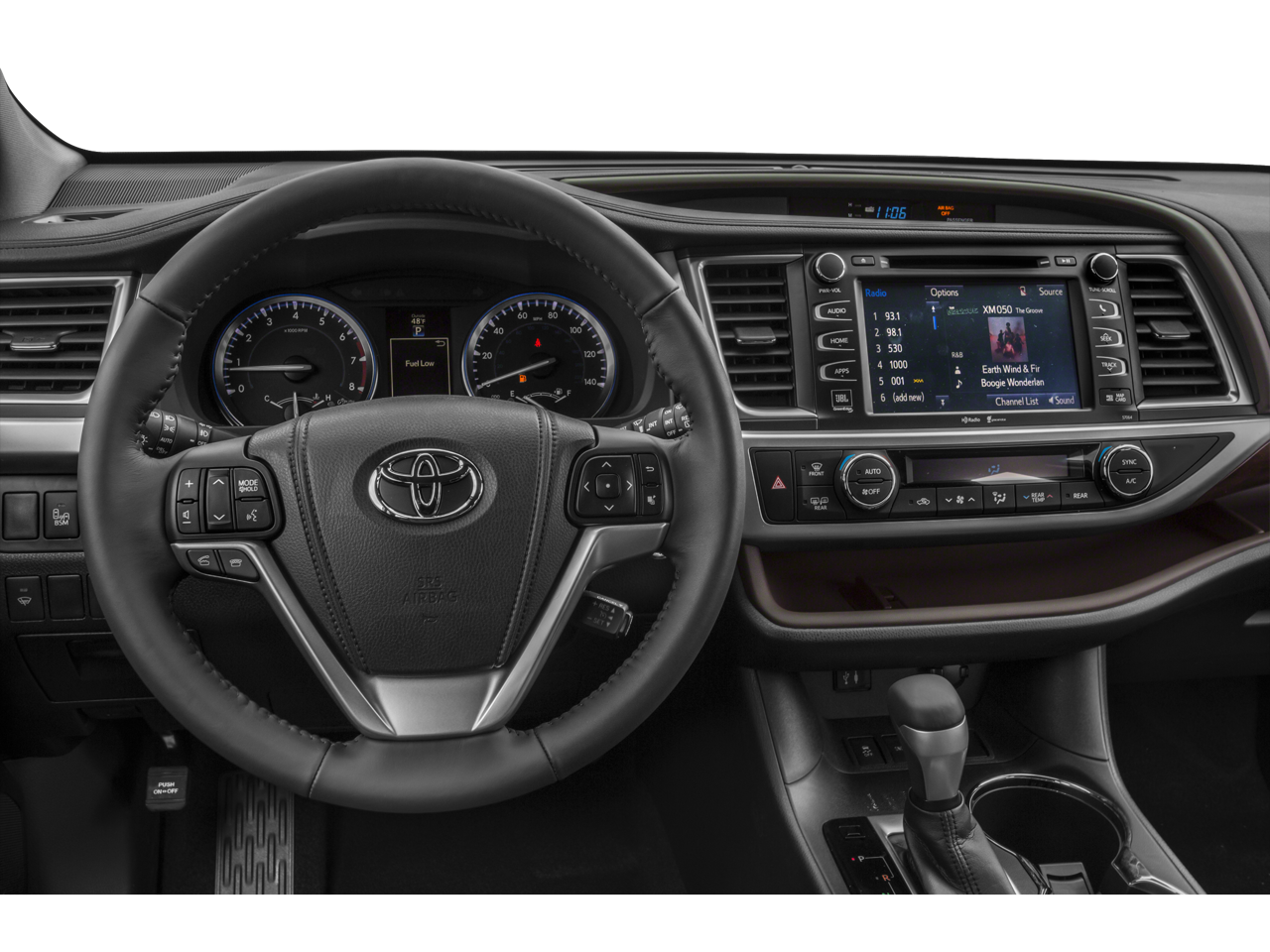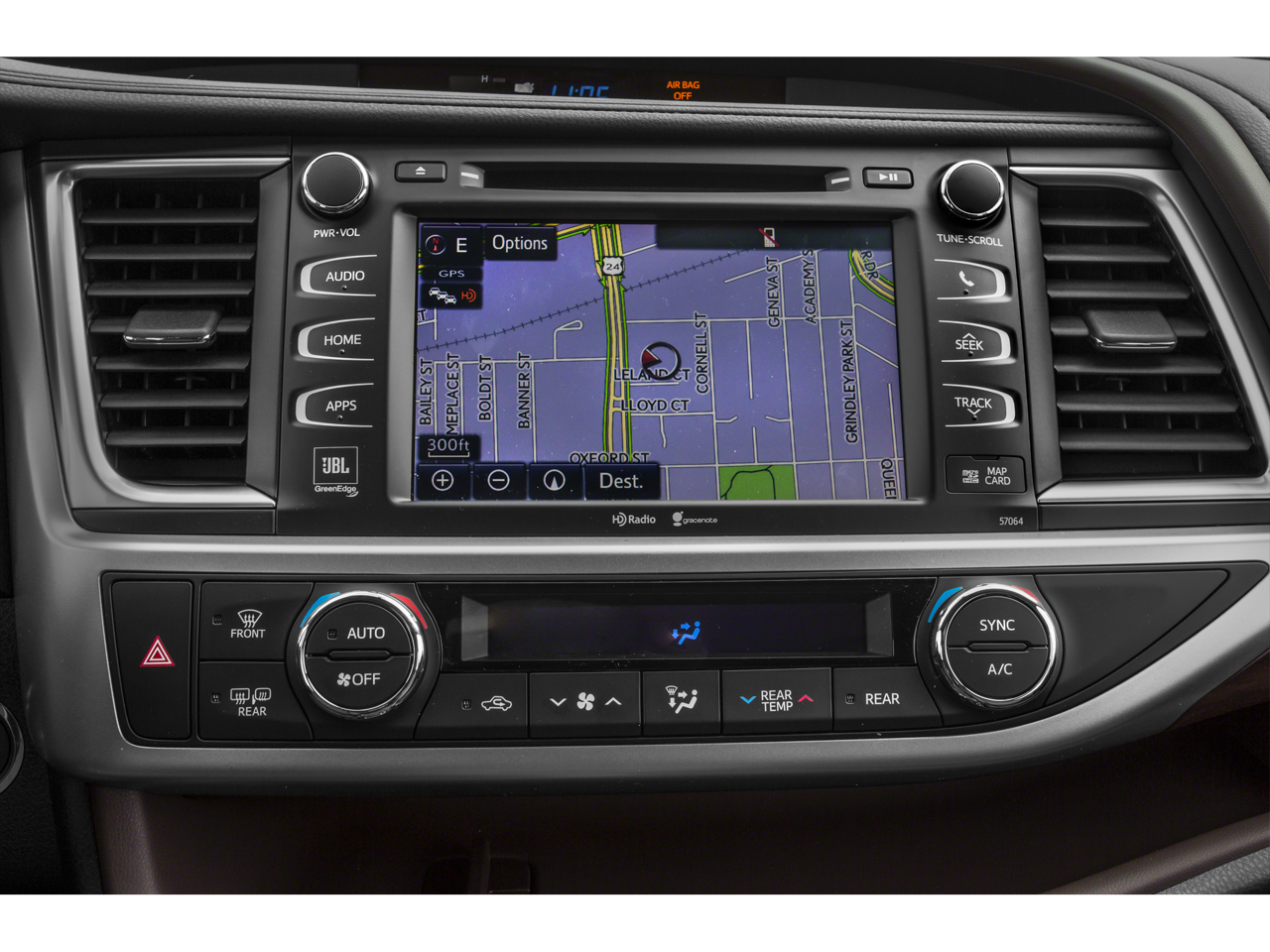 - Radio: Entune Premium JBL Audio w/Nav & App Suite -inc: the Entune Multimedia Bundle (8-inch high resolution touch-screen w/split screen display, AM/FM CD player, MP3/WMA playback capability, 12 JBL GreenEdge speakers, auxiliary audio jack, USB 2.0 port w/iPod connectivity and control, advanced voice recognition, hands-free phone capability, phone book access and music streaming via Bluetooth wireless technology), Entune App Suite, Intelligent Touch controls, SiriusXM Radio w/3-month complimentary trial, HD radio, HD predictive traffic and doppler weather overlay, AM/FM cache radio, and Gracenotes album cover art