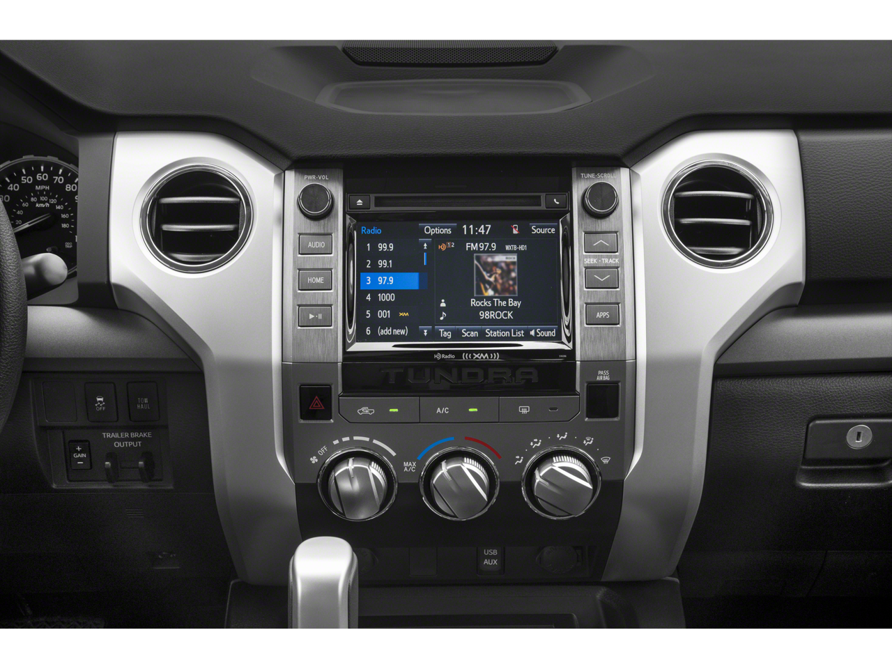 - Radio: Entune Audio Display AM/FM/HD w/CD Player -inc: connected navigation Scout GPS Link app, MP3/WMA playback capability, 6 speakers, 7" high-resolution touch-screen display, auxiliary audio jack, USB 2.0 port w/iPod connectivity and control, Gracenote album cover art, HD traffic and weather in major metro areas, Bluetooth hands-free phone capability w/advanced voice recognition, phone book access and music streaming and Siri Eyes Free, SIRIUSXM Satellite Radio, complimentary SiriusXM All Access 90-day trial subscription