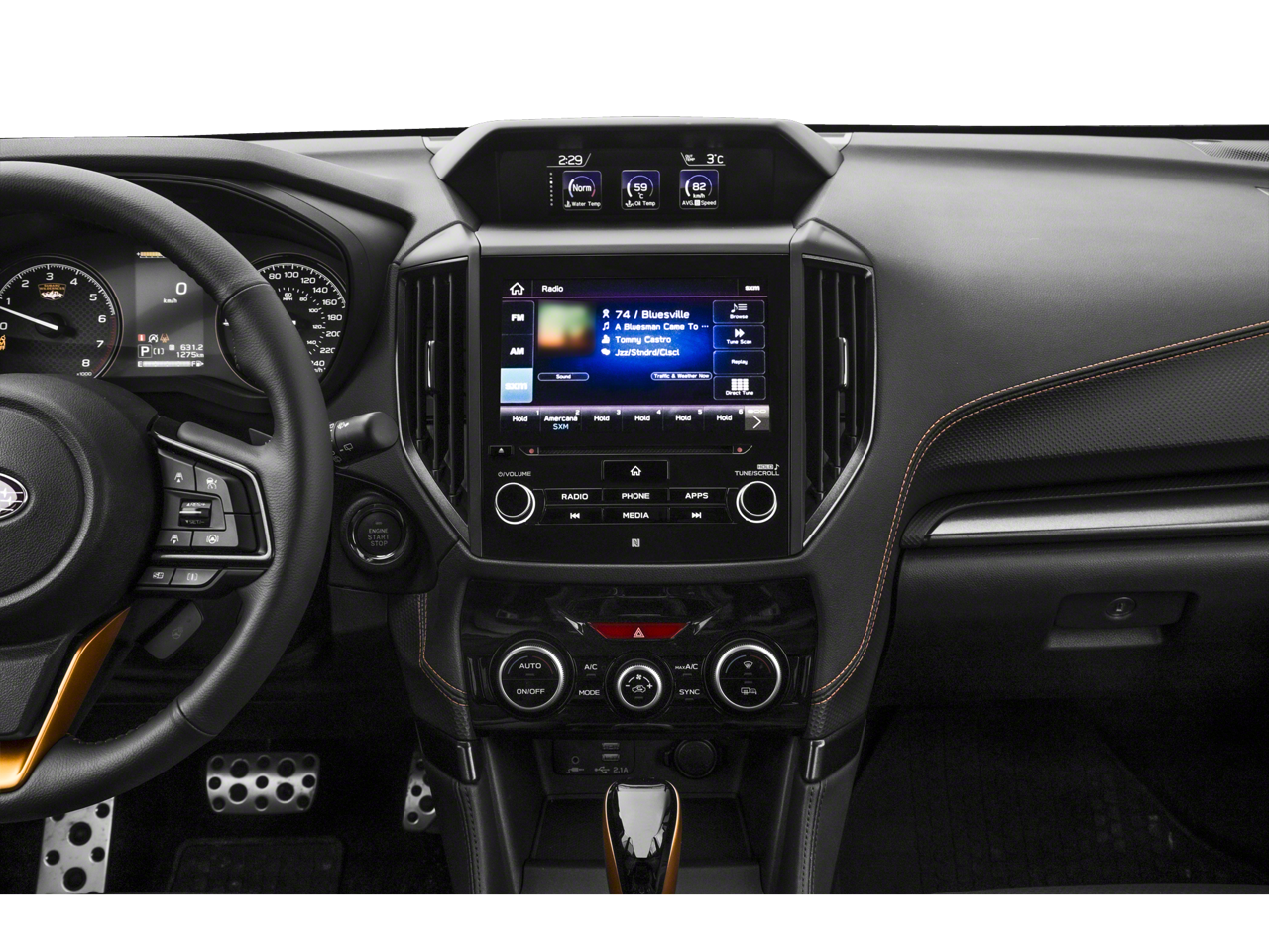 - Radio: Subaru Starlink 8.0" Multimedia Plus System -inc: AM/FM stereo HD Radio w/single-disc CD player, MP3/WMA/CRR/RW file capability, multi-touch gesture high resolution display screen, voice activated controls, Bluetooth audio streaming, hands-free phone connectivity and hands-free SMS text messaging connectivity (refer to subaru.com for cell phone compatibility), Near Field Communication (NFC), iPod control capability, SiriusXM All Access radio and Travel Link (4 months free trial/subscription required after), smartphone integration for AHA, Android Auto, Apple CarPlay, Pandora and Starlink cloud applications (refer to subaru.com for app availability), USB and Over The Air (OTA) audio system update, steering wheel controls for audio and Bluetooth, 6 speakers, 3.5mm auxiliary input jack and dual USB A input/charge ports